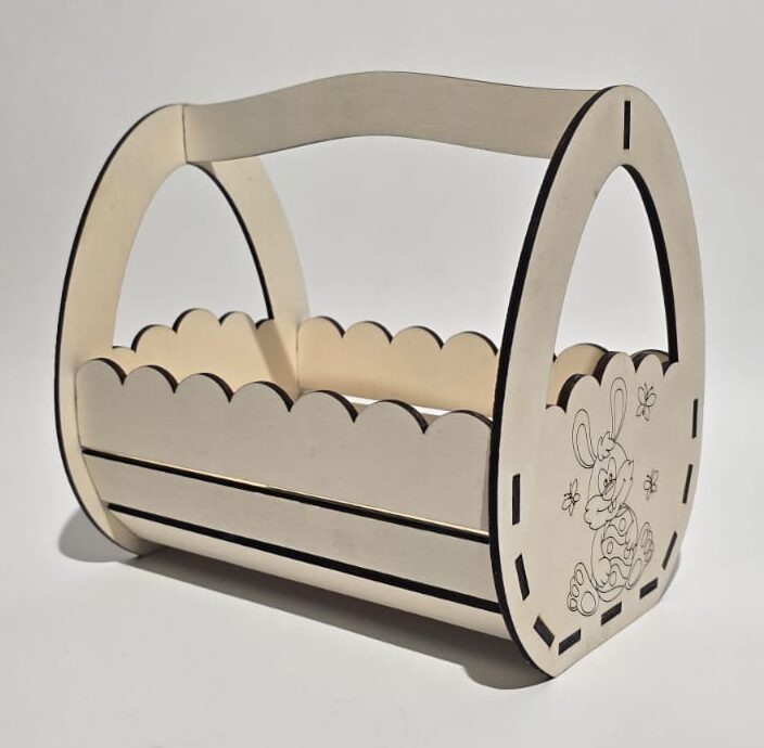 Ce joli panier en bois a été imaginé pour accompagner les plus beaux moments de Pâques. Avec son adorable lapin gravé et ses formes douces, il apporte immédiatement une ambiance chaleureuse et festive.